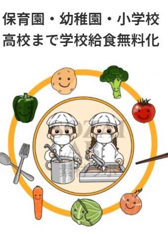 1:子供の学校給食・医療費を19歳まで完全に無料へ 【人口増加】